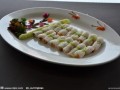 原料:干竹蓀16個。 配料:魚茸100克,豌豆32粒,水發(fā)發(fā)菜少許,熟火腿末、油菜末各少許,豆苗少許,雞蛋清2個。料酒10克,精鹽