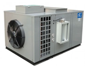 整合而說就是利用熱泵高溫干燥機組的蒸發(fā)器吸收外界環(huán)境(空氣)中的熱量,或者回收干燥過程中排氣的余熱,經過壓縮機做功,將高溫高壓的能量轉移至干燥恒溫房中,通過干燥恒溫房中的冷凝器釋放熱量,干燥恒溫房內的熱空氣經過反復循環(huán)加溫,吸收物料中的水分,經過熱風排水或者冷凝除水的過程,把物料中的水分排出,不斷循環(huán),并最終實現物料的連續(xù)干燥。