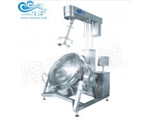 該設(shè)備主要由鍋體、架體、攪拌系統(tǒng)、加熱系統(tǒng)、調(diào)速傳動(dòng)裝置、攪拌軸、鍋體翻轉(zhuǎn)系統(tǒng)等組成,采用一次沖壓成型的半球形不銹鋼鍋體,采用液化氣、天然氣等加熱形式,攪拌方式采用特殊的傾斜式傳動(dòng),使用的行星式攪拌器與鍋體充分接觸,實(shí)現(xiàn)傳動(dòng)公轉(zhuǎn)與自轉(zhuǎn)的不整數(shù)傳動(dòng)比,使鍋內(nèi)無攪拌死角。使用先進(jìn)的傳動(dòng)與密封結(jié)構(gòu),使傳動(dòng)部分與鍋內(nèi)潔凈、衛(wèi)生。采用變頻調(diào)速動(dòng)力,運(yùn)行更平穩(wěn)。采用液壓升降,翻鍋運(yùn)料,免拆裝攪拌器,節(jié)省人力,降低勞動(dòng)強(qiáng)度,是性能優(yōu)良的食品加工設(shè)備。