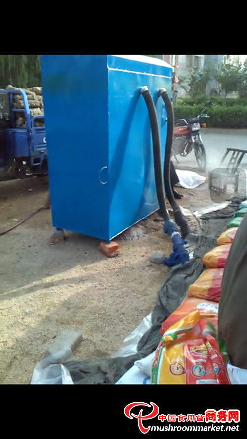十、鍋爐點(diǎn)火后,待菌垛內(nèi)的冷汽排凈,下部開始冒熱汽后,可以把菌垛底邊四周的農(nóng)膜及塑料雨布輕壓,并且留出排水口,如果碼垛的地表不平,一定要使排水口留在垛底的最底處。